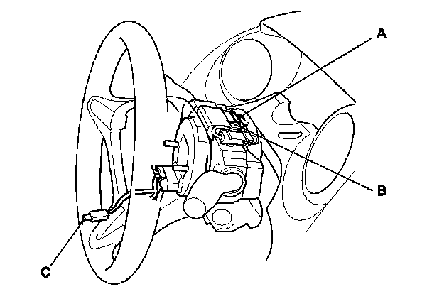 5. Remove the driver's airbag assembly, Drivers Airbag Replacement and disconnect the horn switch 1P positive terminal (C) from the driver's airbag.