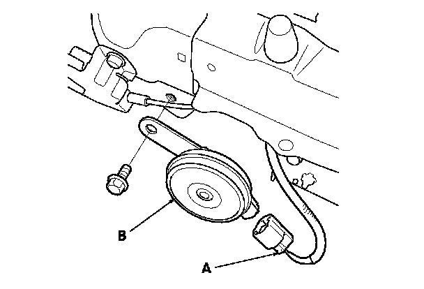 2. Disconnect the 1P connector (A) from the horn (B).