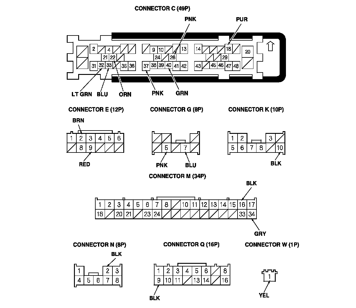 NOTE: All connector views are shown from wire side of female terminals.
