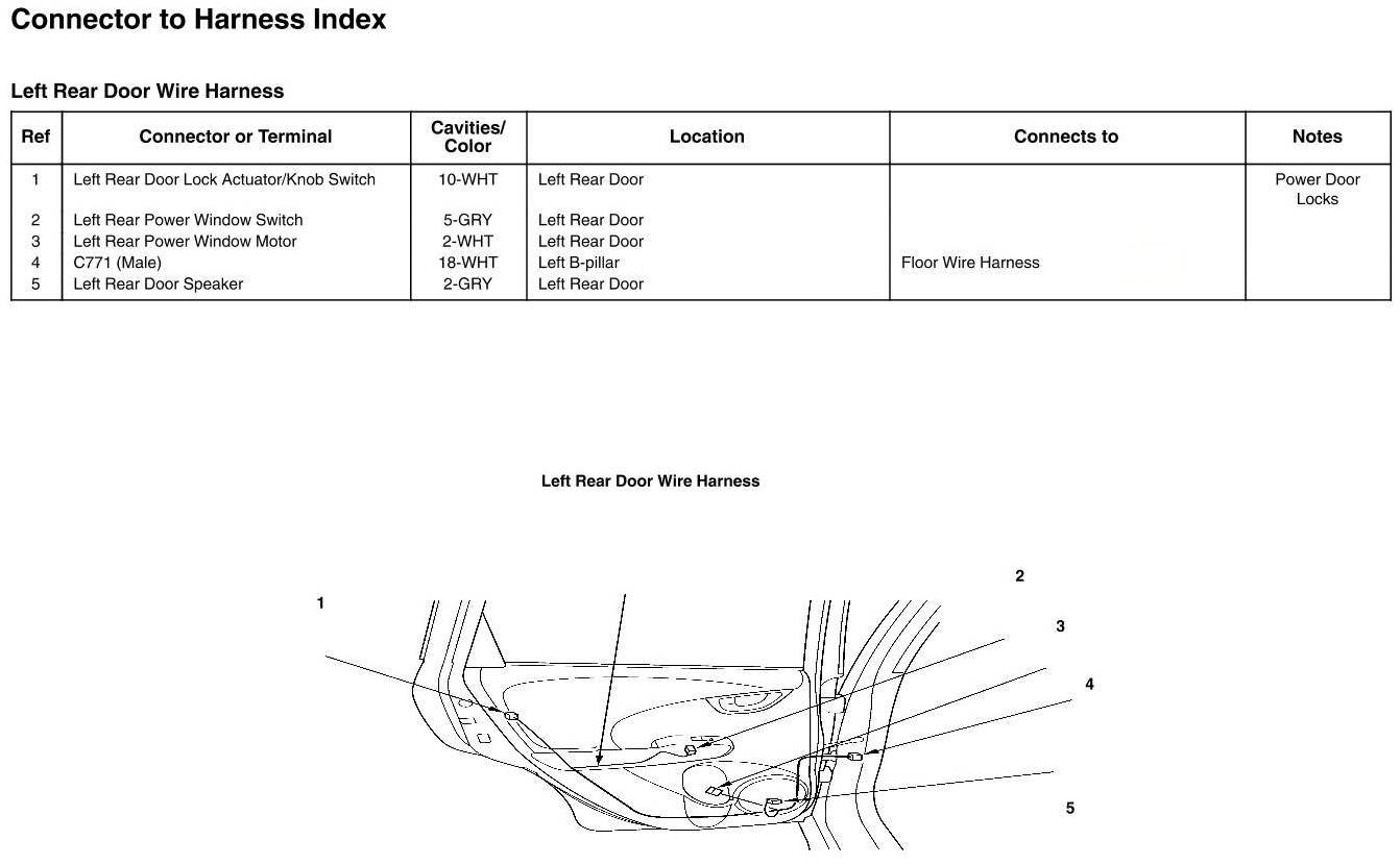 Left Rear Door Wire Harness Connector And Harness Locations