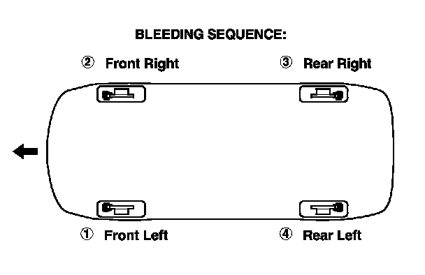 NOTE: Bleed the calipers or the wheel cylinders in the sequence shown.