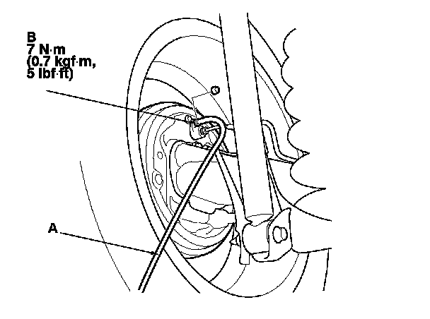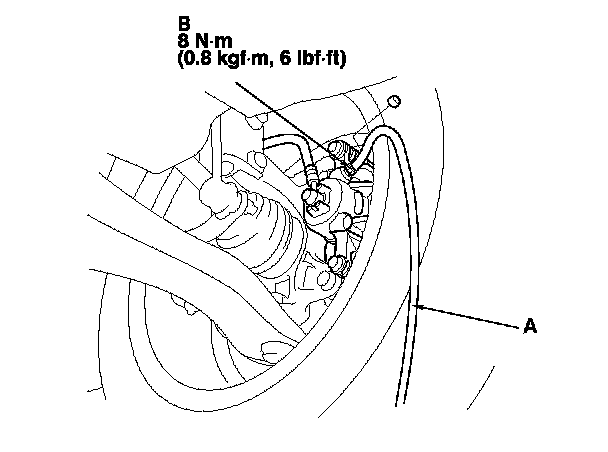 4. Attach a length of clear drain tube (A) to the bleed screw (B), then, loosen the bleed screw to allow air to escape from the system. Then tighten the bleed screw securely.