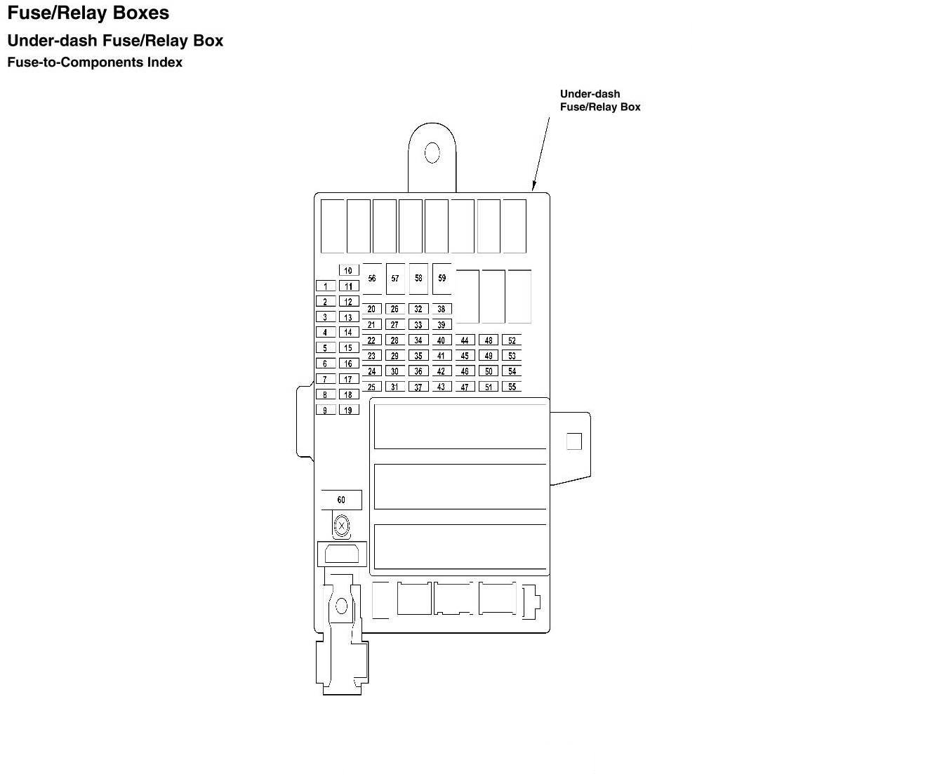Under-dash Fuse/Relay Box - Fuse-to-Components Index