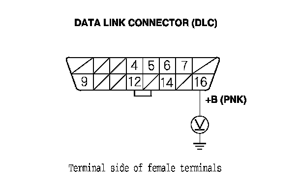 28. Measure the voltage between DLC terminal No. 16 and body ground.