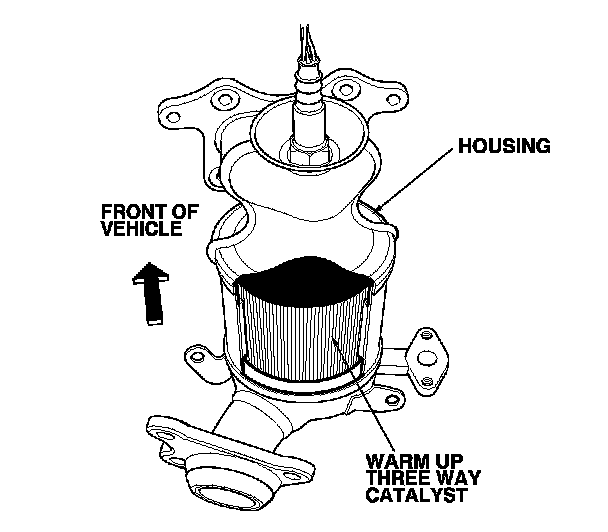 The WU-TWC and the TWC convert hydrocarbons (HC), carbon monoxide (CO), and oxides of nitrogen (NOx) in the exhaust gas to carbon dioxide (CO2), nitrogen (N2), and water vapor.