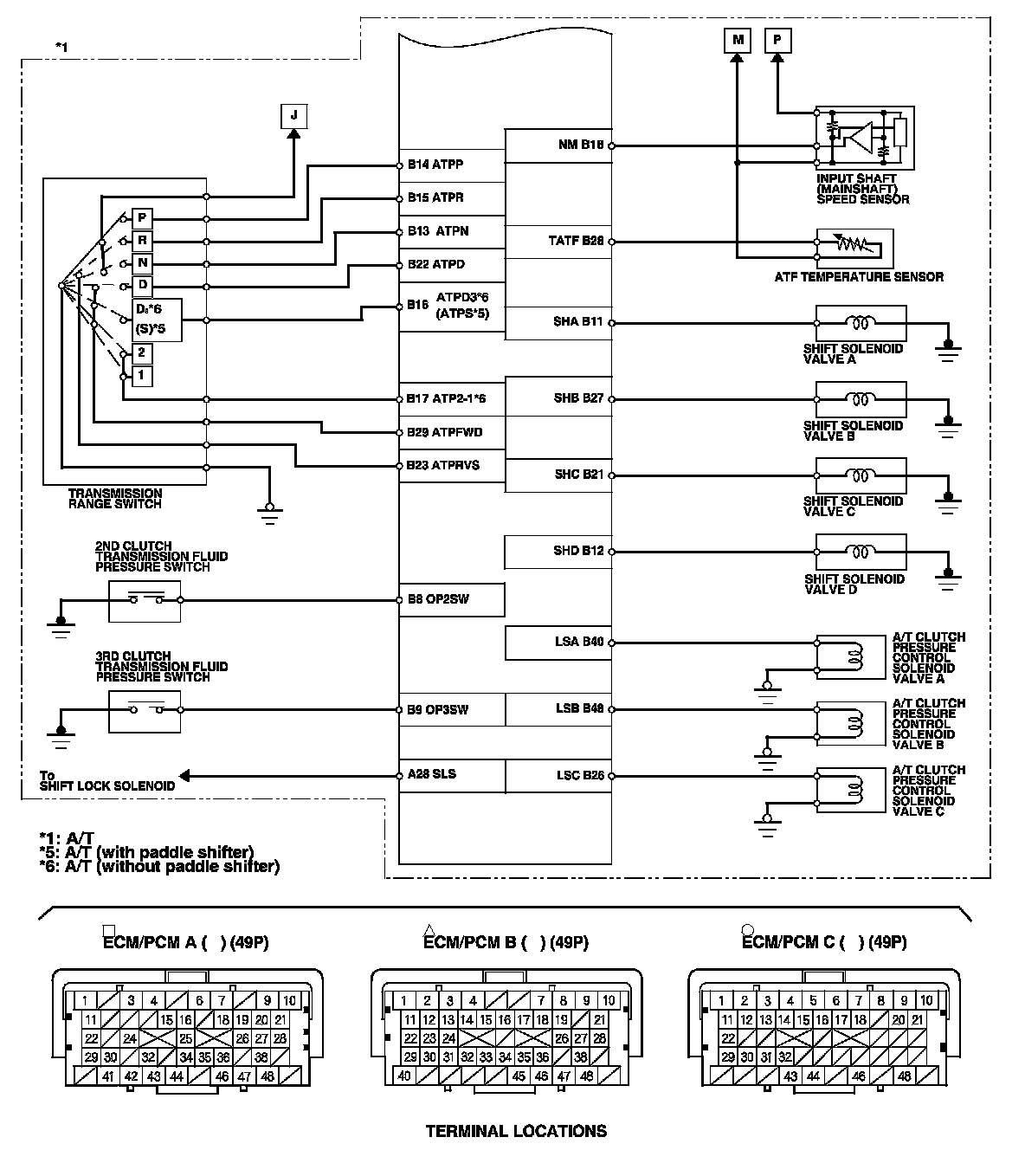 ECM/PCM Inputs and Outputs at Connector B (triangle) (49P)