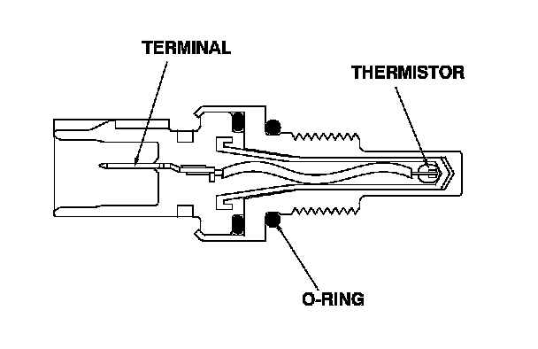 ECT sensors 1 and 2 are temperature dependent resistors (thermistors). The resistance decreases as the engine coolant temperature increases.