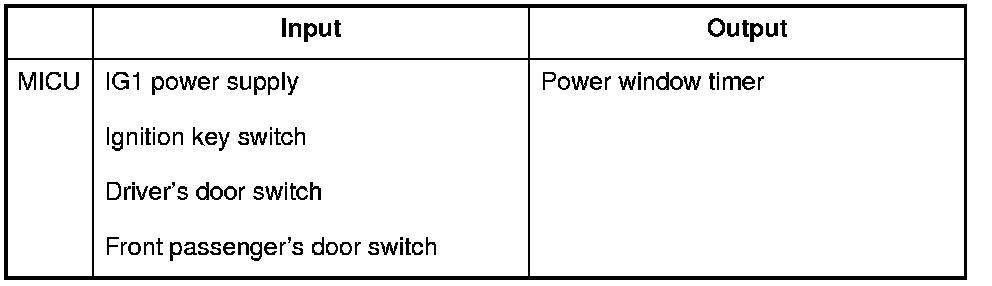 The MICU control of the power window timer operation is based on input signals from each switch.