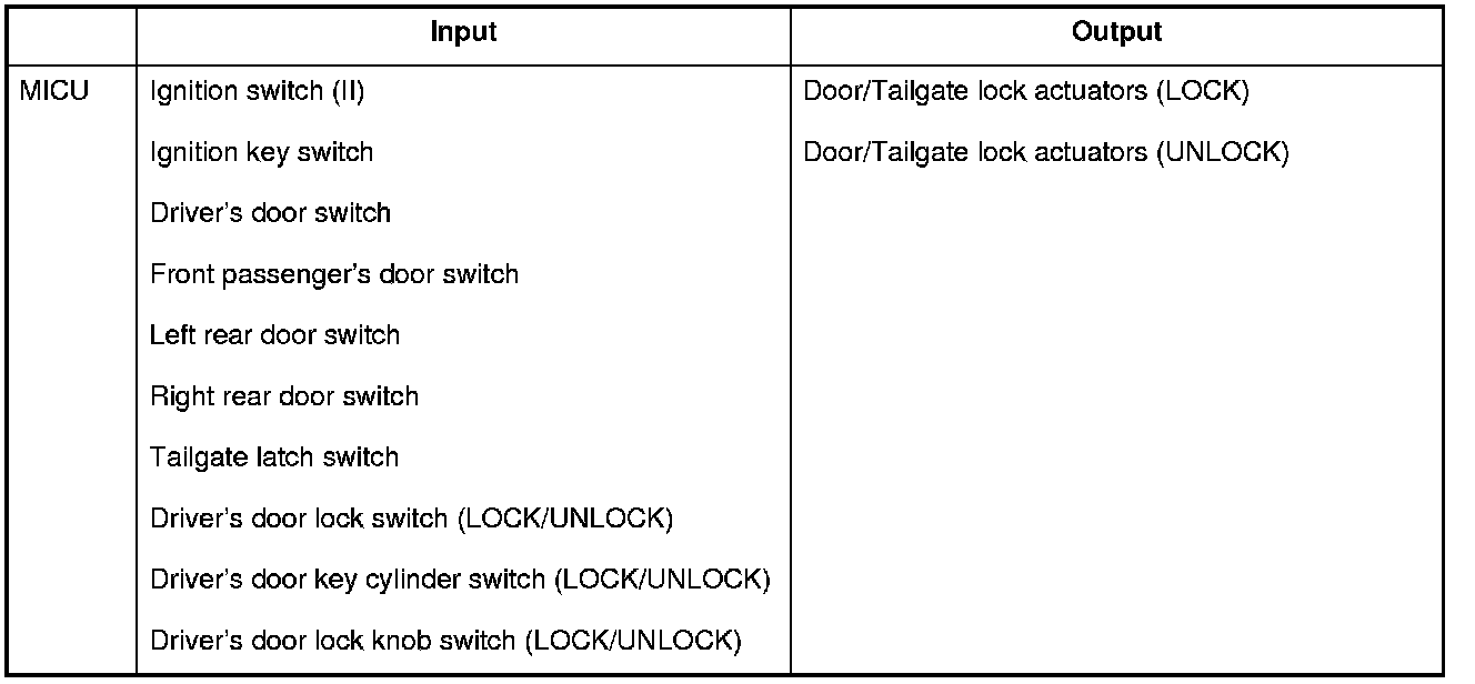 The MICU control of the door lock actuators is based on input signals of each switch and B-CAN signals.
