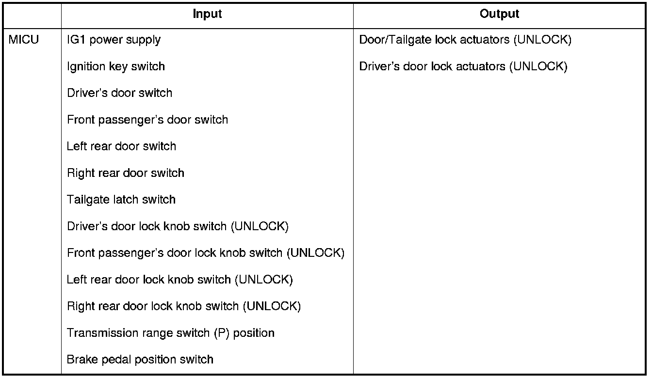 Auto Power Door Locks (UNLOCK operation)