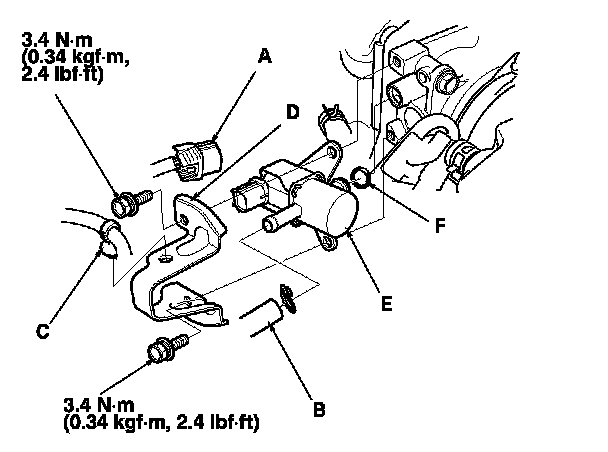 3. Install the parts in the reverse order of removal with a new O-ring (F).