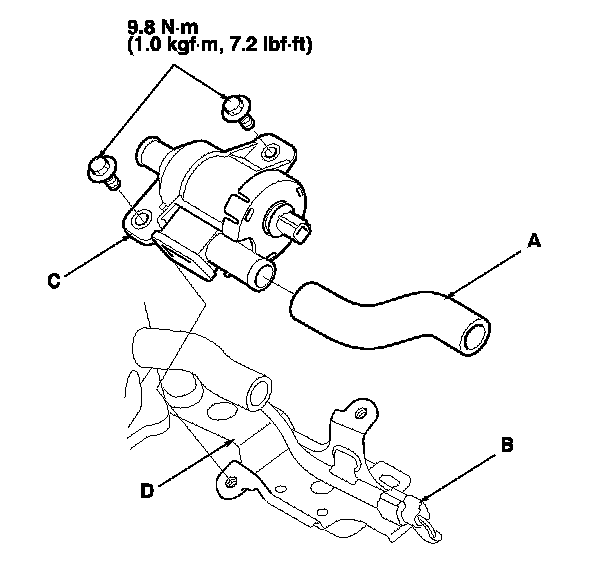 3. Remove the EVAP canister vent shut valve (C) from the canister bracket (D).