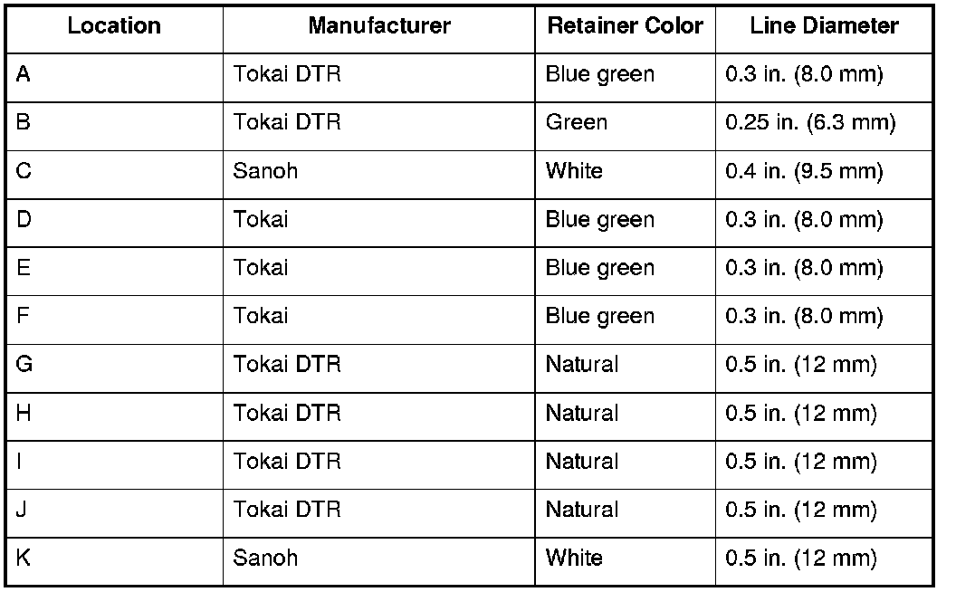 A disconnected quick-connect fitting can be reconnected, but the retainer on the mating line cannot be reused once it has been removed from the line. Replace the retainer when: