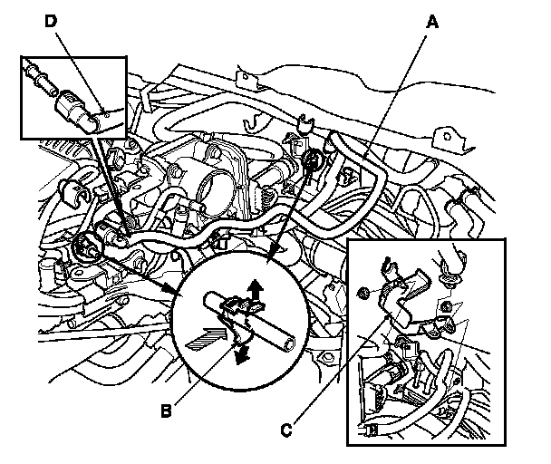 - when replacing the fuel tube/quick-connect fitting assembly at the engine compartment, remove the air cleaner, Service and Repair and the cover (C).