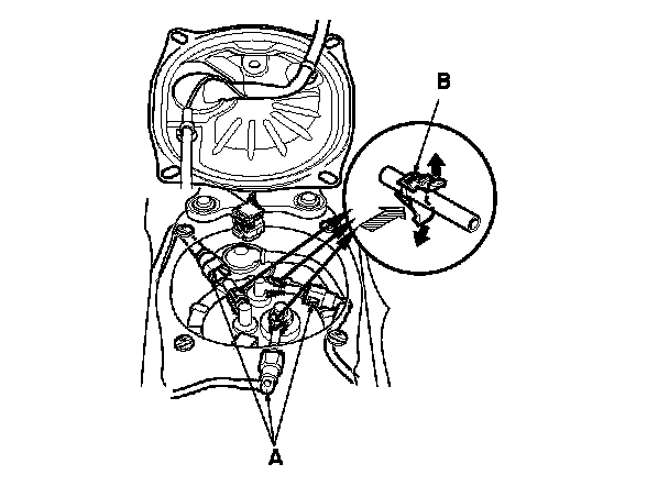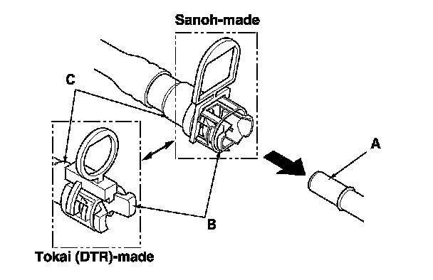 2. Insert a new retainer (A) into the connector (B) if the retainer is damaged, or after: