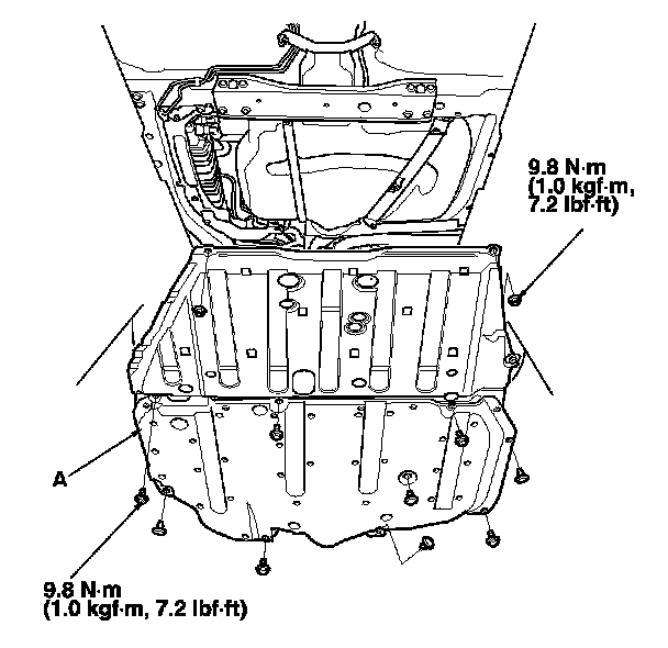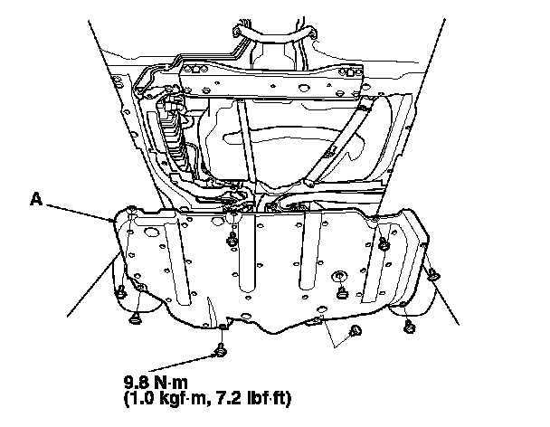 7. LX (A/T model): Remove the floor under cover assembly (A).