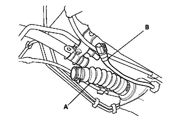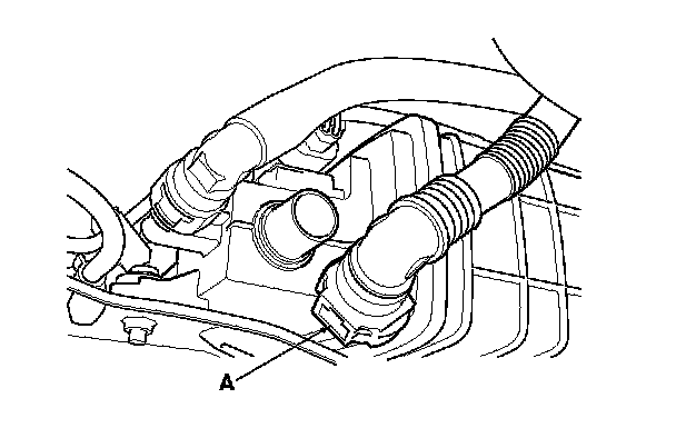 10. Disconnect the fuel tank vapor control valve hose (A).