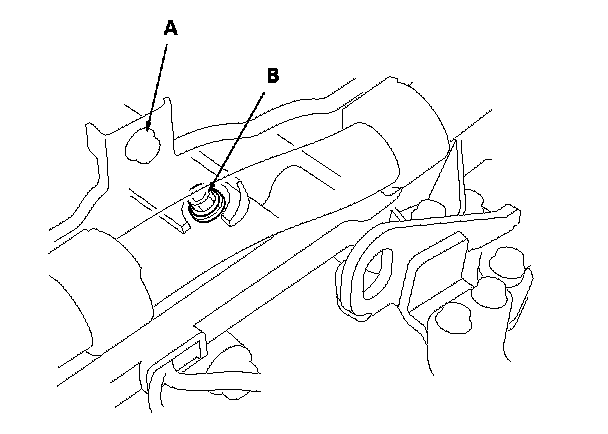 6. Connect the oil pressure gauge to the line pressure inspection port (A). Do not allow dust or other foreign particles to enter the hole while connecting the gauge.