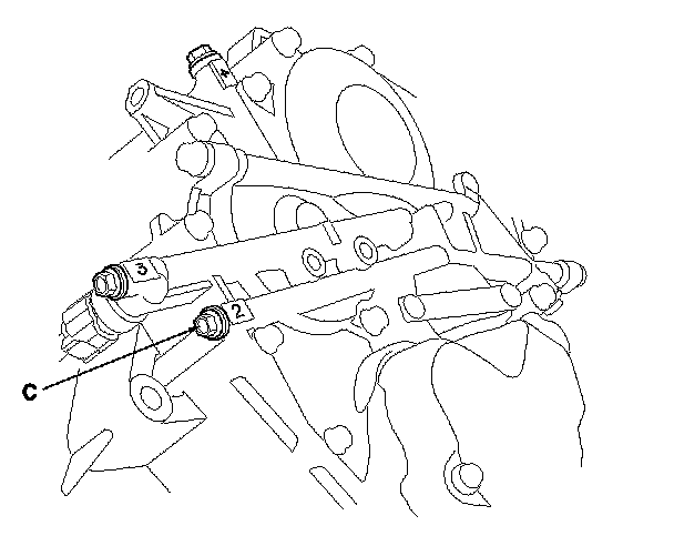13. Connect the oil pressure gauge to the 2nd clutch pressure inspection port (C).
