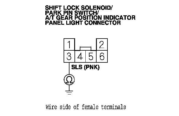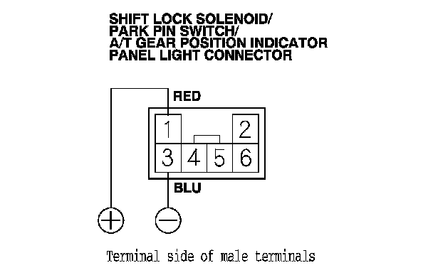 NOTE: Do not connect the positive battery terminal to the connector terminal No. 3 or you will damage the diode inside the shift lock solenoid.