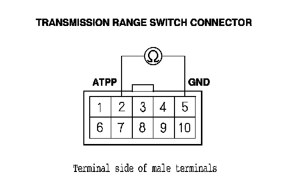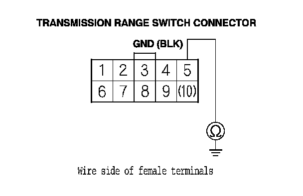 19. Check for continuity between transmission range switch connector terminal No. 5 and body ground.