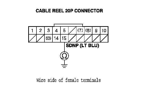 9. Check for continuity between cable reel 20P connector terminal No. 15 and body ground.