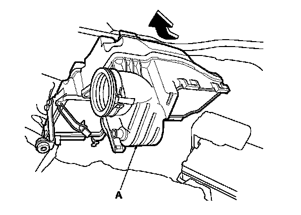 7. Remove the air cleaner case (A) as shown.