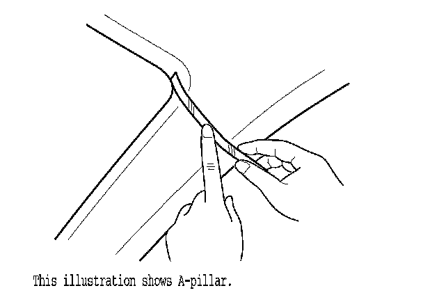 2. Apply masking tape to the headliner, mark the upper edge of each pillar trim.