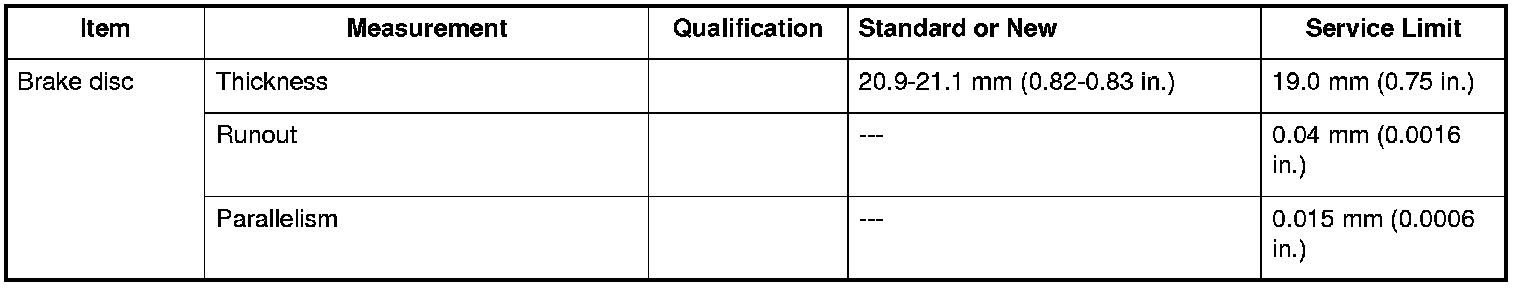 Brake Disc Specifications