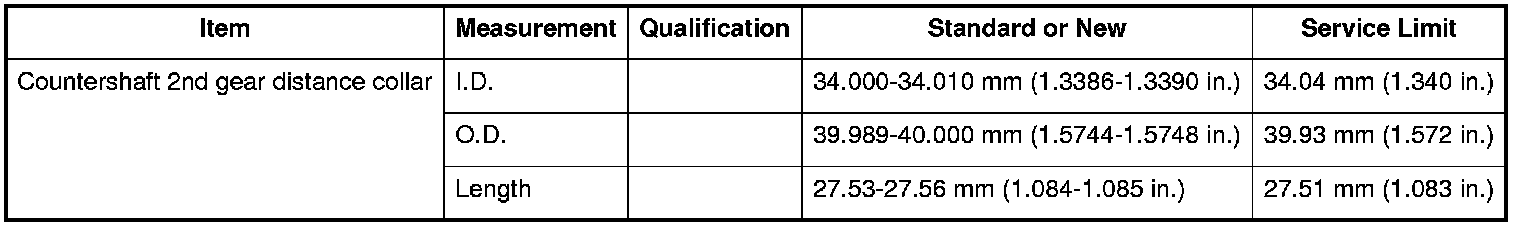 Countershaft 2nd Gear Distance Collar Specifications (M/T)