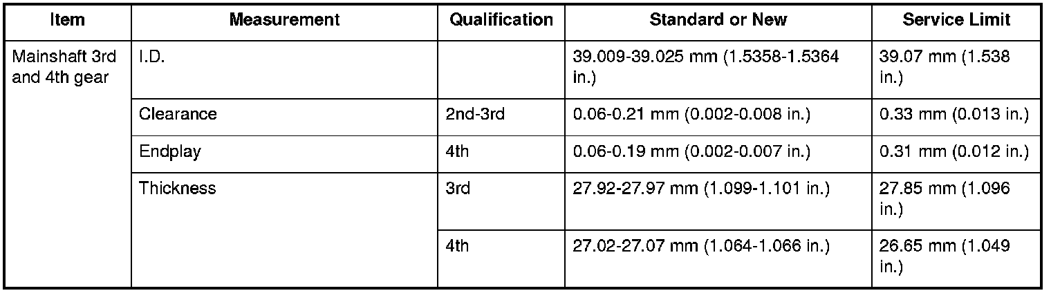 Mainshaft 3rd And 4th Gear Specifications (M/T)