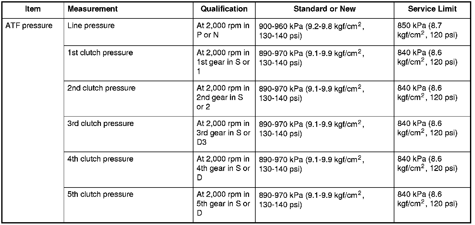 ATF pressure Specifications