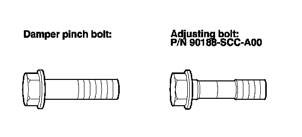 - The camber angle can be adjusted up to ±20 ' (center of tolerance) by replacing one damper pinch bolt with the adjusting bolt.