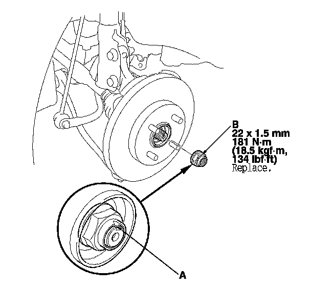 - Before installing the spindle nut, apply a small amount of engine oil to the seating surface of the nut. After tightening, use a drift to stake the spindle nut shoulder against the driveshaft.