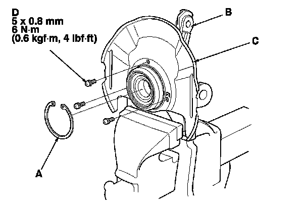 8. Install the splash guard (C), and tighten the screws (D) to the specified torque value.