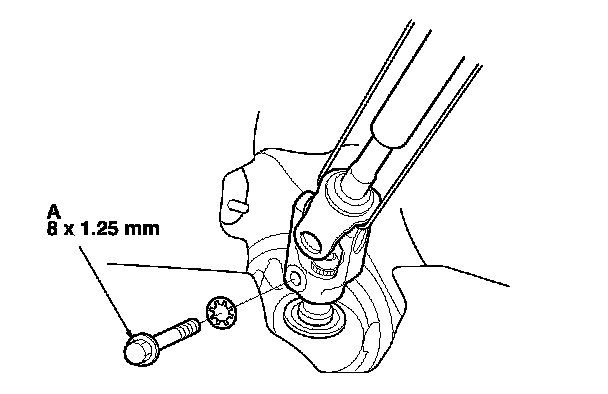 9. Remove the steering joint bolt (A).