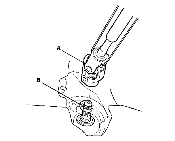 4. Slip the lower end of the steering joint (A) onto the pinion shaft (B).