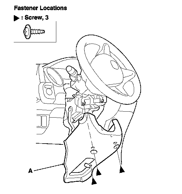 1. Release the tilt/telescope lever (A), tilt the steering column fully down, and pull the steering wheel all the way out.
