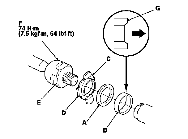 NOTE: Make sure that the tapered side (G) of the rubber stop is toward the housing side.