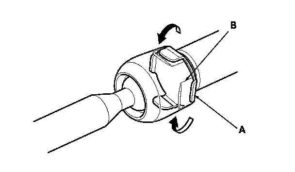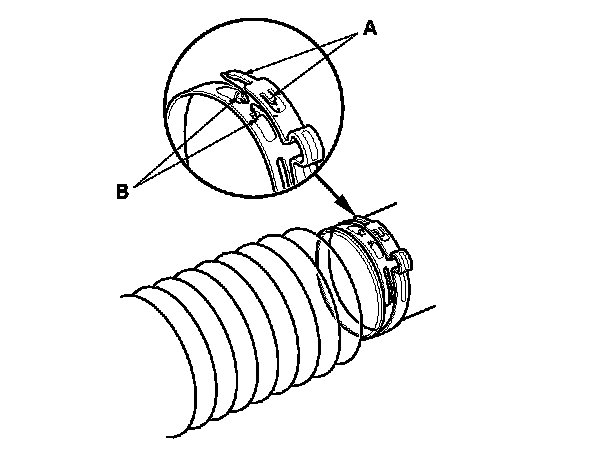 9. Install the new boot bands by aligning the tabs (A) with the holes (B) of the band.