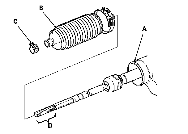 8. After installing the boots, wipe the grease off the threaded section (D) of the rack end.