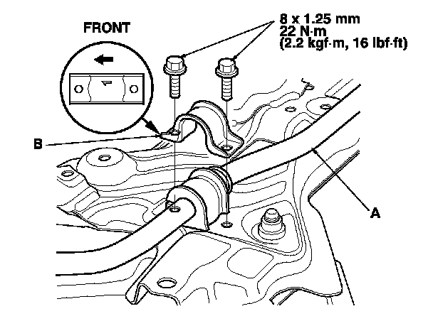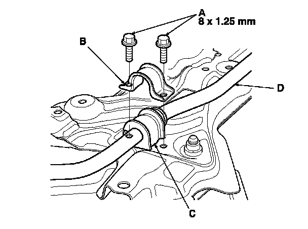 2. Install the stabilizer bar (A) with the bushings on the front subframe.