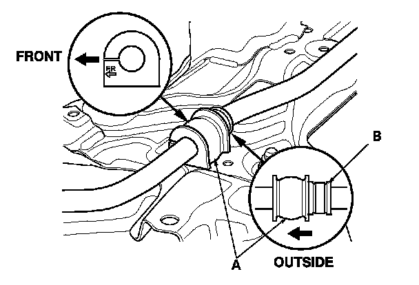 - Align the stabilizer band clamp (B) with the side of the bushings.