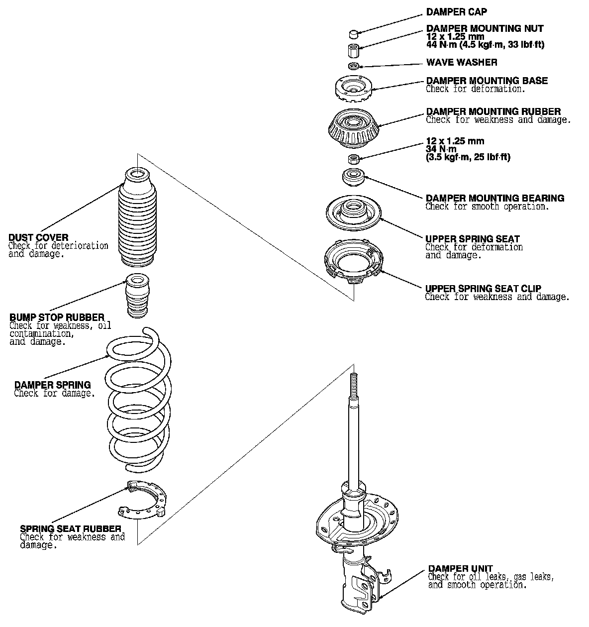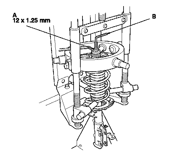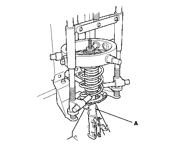 NOTE: When compressing the damper spring, use a commercially available strut spring compressor (Branick MST-580A or Model 7200, or equivalent) according to the manufacturer's instructions.