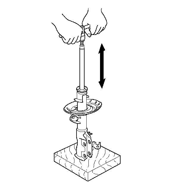 2. Compress the damper assembly by hand, and check for smooth operation through a full stroke, both compression and extension. The damper should extend smoothly and constantly when compression is released. If it does not, the gas is leaking and the damper should be replaced.
