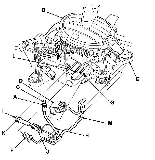 6. Replace the shift lock solenoid, the solenoid plunger (I), and the plunger spring (J) assembly.
