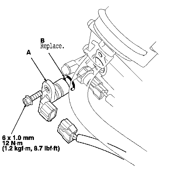 3. Install a new O-ring (B) on the new input shaft (mainshaft) speed sensor, then install the input shaft (mainshaft) speed sensor.