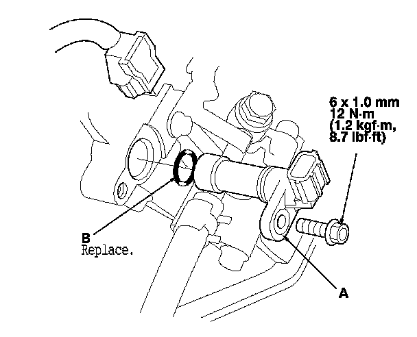 3. Install a new O-ring (B) on the new output shaft (countershaft) speed sensor, then install the output shaft (countershaft) speed sensor.