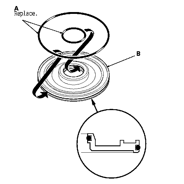 3. Install new O-rings (A) on the piston (B) of the 3rd and 5th clutches.