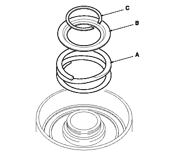 5. Install the return spring (A) and the spring retainer (B), and position the snap ring (C) on the spring retainer.
